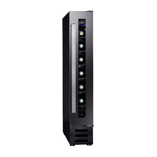 Art. CCVB15 - incasso L15xH863xP525 - Capacità: 7 bottiglie - Controlli elettronici - Display - Porta in cristallo anti UV e acciaio inox - 7 Ripiani in legno di quercia - Cantina mono temperatura per la conservazione del vino - Estetica nera con maniglia inox - Si reversibile - luce LED - classe energetica G