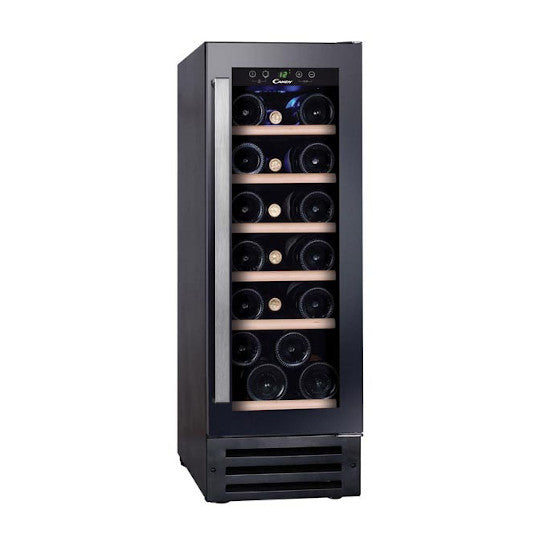 Art. CCVB30 - incasso L295xH813xP570 - Capacità: 19 bottiglie - Controlli elettronici - Display - Porta in cristallo anti UV e acciaio inox - 6 Ripiani in legno di quercia - Cantina mono temperatura per la conservazione del vino - Estetica nera con maniglia inox - Si reversibile - luce LED